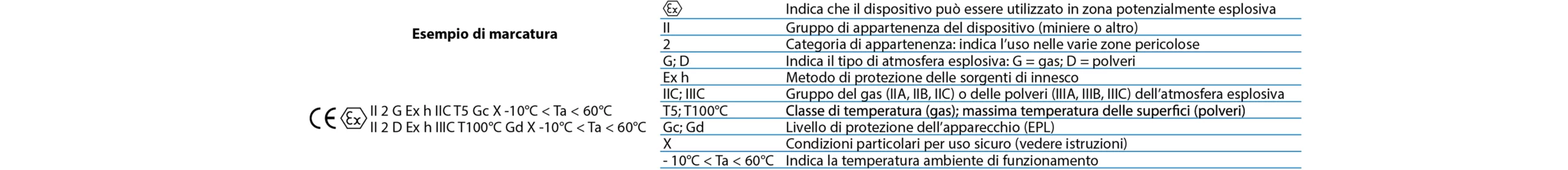 Secondo la direttiva 2014/34/EU, sia i dispositivi elettrici che quelli meccanici sono soggetti alla approvazione di conformità; è importante notare che il componente che è classificato nella categoria più bassa definisce la classe di appartenenza di tutto il dispositivo di cui esso fa parte. Se, ad esempio, la bobina è marcata Ex II 2... e la valvola è marcata Ex II 3... l’assieme valvola + bobina non potrà essere messo in servizio in zona 1 o 21 ma solamente in zona 2 o 22.