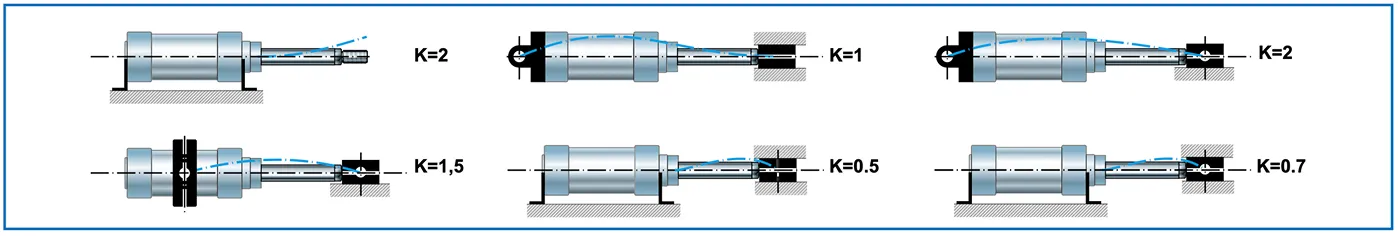 La scelta dello stelo dipende da 4 fattori: diametro dello stelo; modalita di fissaggio del cilindro; corsa del cilindro; carico (spinta) del cilindro.